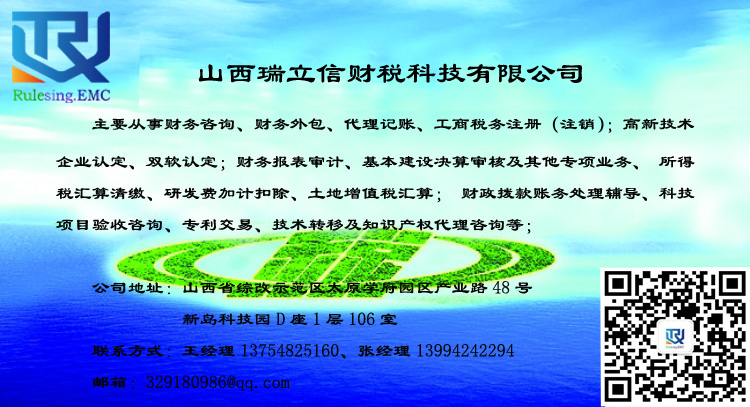 山西瑞立信財稅科技有限公司是以會計師事務(wù)所、稅務(wù)師事務(wù)所及知識產(chǎn)權(quán)代理公司等專業(yè)服務(wù)機構(gòu)作為依托背景,擁有多名注冊會計師、注冊稅務(wù)師、會計師、助理會計師等專業(yè)的財稅人員,擁有可靠而廣泛的社會資源,能保證客戶享受到安全、放心、可靠、完善的財稅服務(wù)。